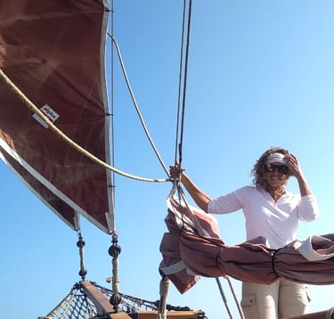 Belen is an archaeologist specialized in the study of astronomy related to the ancient peoples of the Mediterranean. Her research took her from excavation to excavation, from island to island, always looking for the link between land, seas, and skies. That’s how her love for sailing, made her change her course in life. Belen speaks Spanish, Greek, English, French, Italian and a few more languages, ancient and modern. She has sailed between the Mediterranean and the Atlantic and is a sailor and an instructor of the “story telling” type.